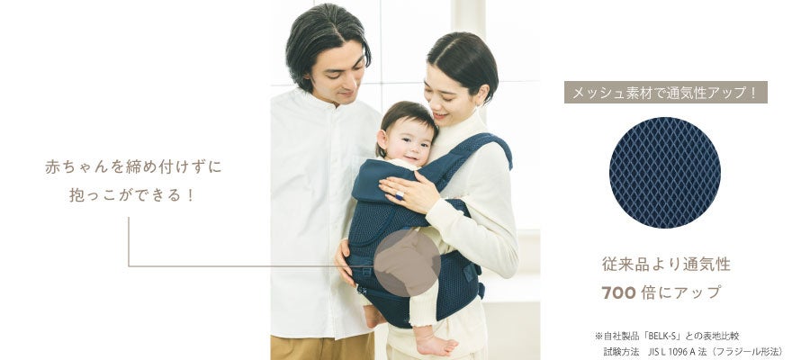 抱っこひもユーザーの約8割が悩む肩腰への負担を解決するヒップシートキャリアから、抱っこによる暑さを軽減する猛暑を乗り切るオールメッシュの抱っこひも