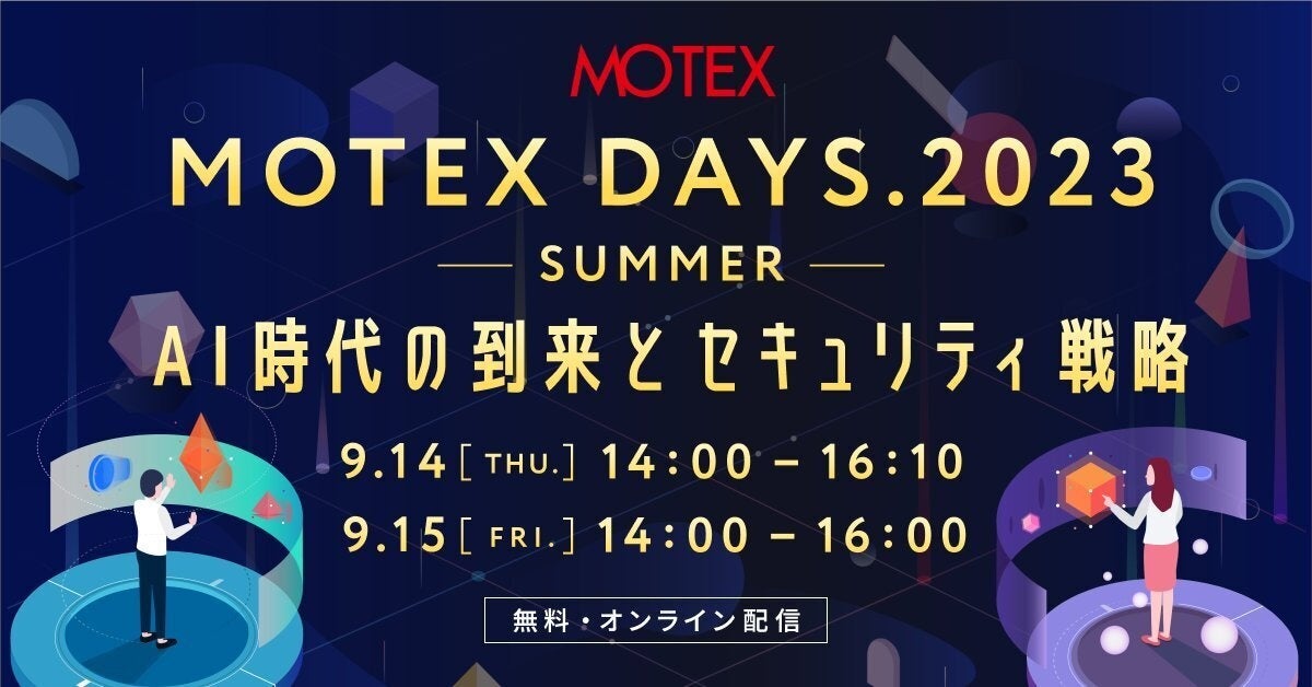 「MOTEX DAYS.2023 -SUMMER-」は、エムオーテックス株式会社が主催するオンラインイベントです。毎回異なるテーマを設定して定期開催されており、今回は「AI時代の到来とセキュリティ戦略」をテーマとしたセッションやパネルディスカッションが行われます。