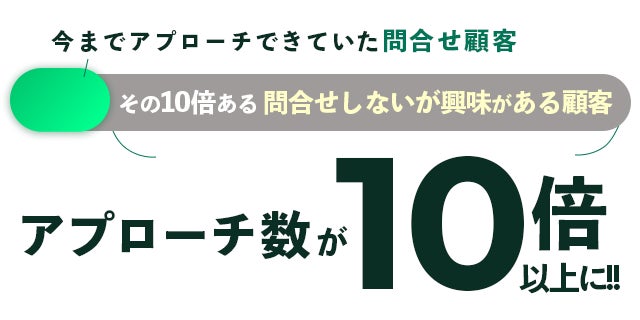 問い合わせがないが興味度の高い「準顕在顧客」(※以下ホットリード)は問い合わせをする顕在顧客の10倍からそれ以上存在しており、この層にリアルタイムで直接アプローチをすることで、顧客接点増加に寄与します。