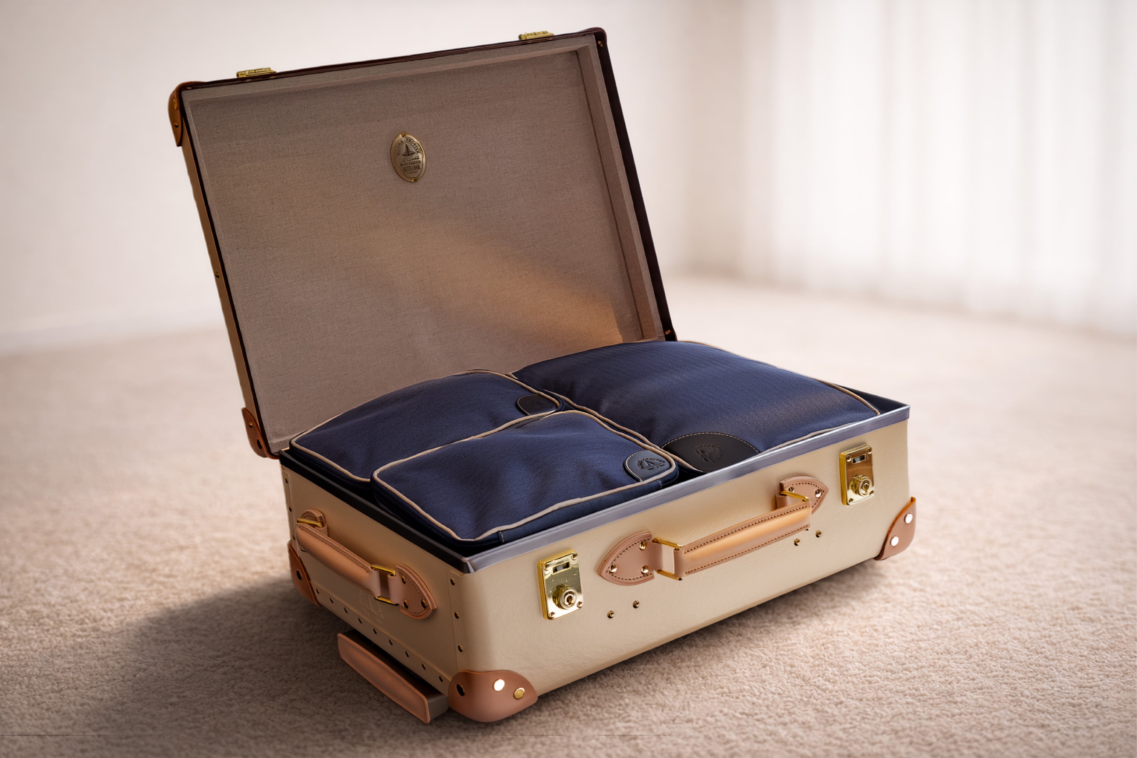 スーツケース1点ご購入、または1回あたりのご購入金額が総額20万円以上(税込価格)のお客様には、グローブ・トロッターオリジナルのパッキングキューブを贈呈いたします。 *数量限定