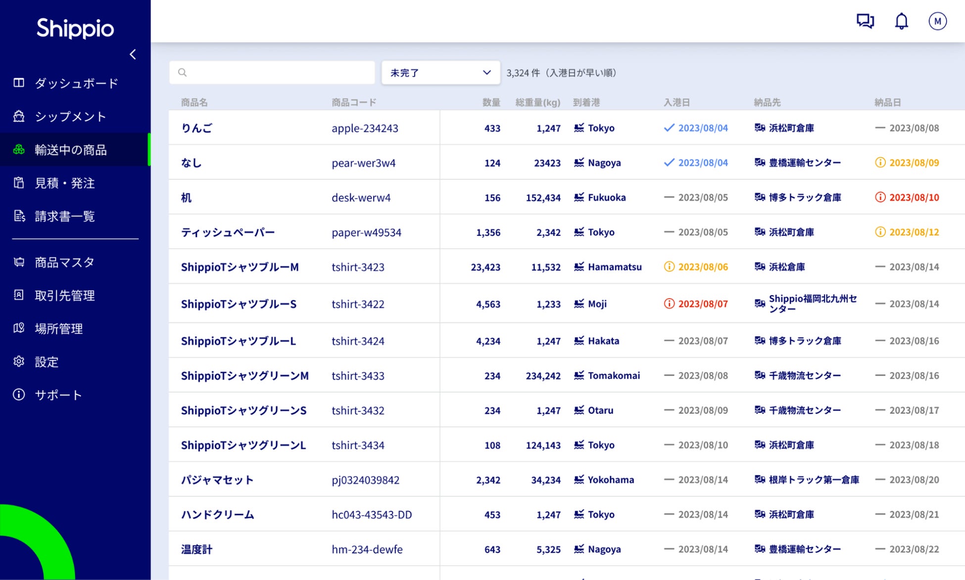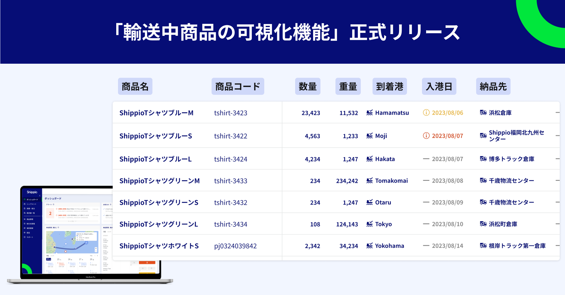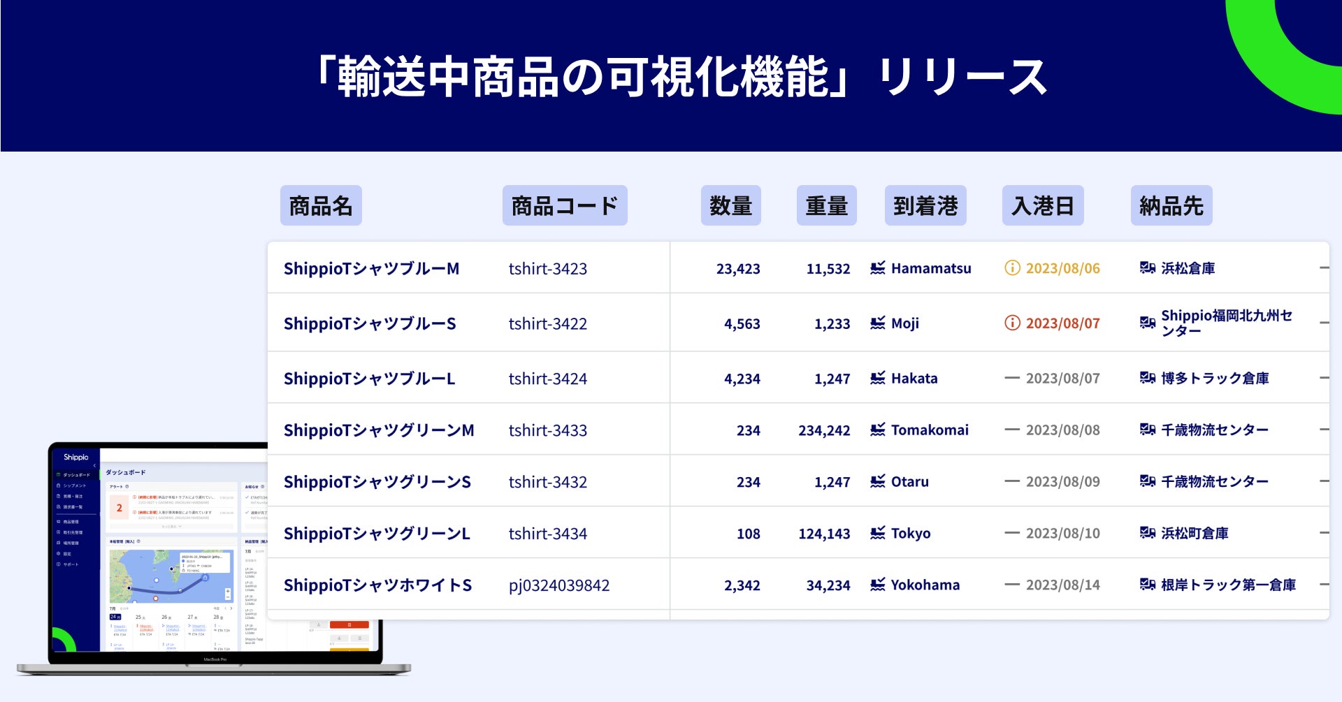 Shippio、商品単位で輸送状況・納品日確認が可能になる「輸送中商品の可視化機能」をリリース