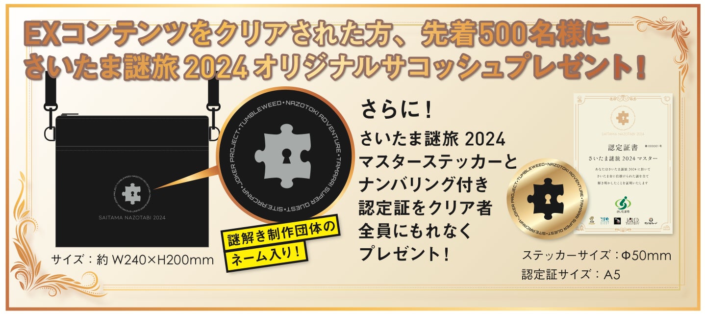 エクストラコンテンツをクリアされた方には先着500名様に限定賞品のほか、「さいたま謎旅2024マスター」ノベルティがもれなくもらえる!