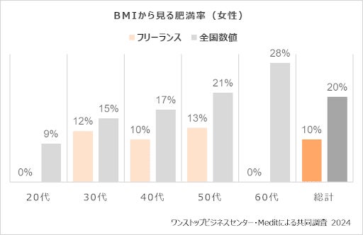 <調査結果>全国の統計と比較しフリーランスの肥満率が明らかに低いことが判明!