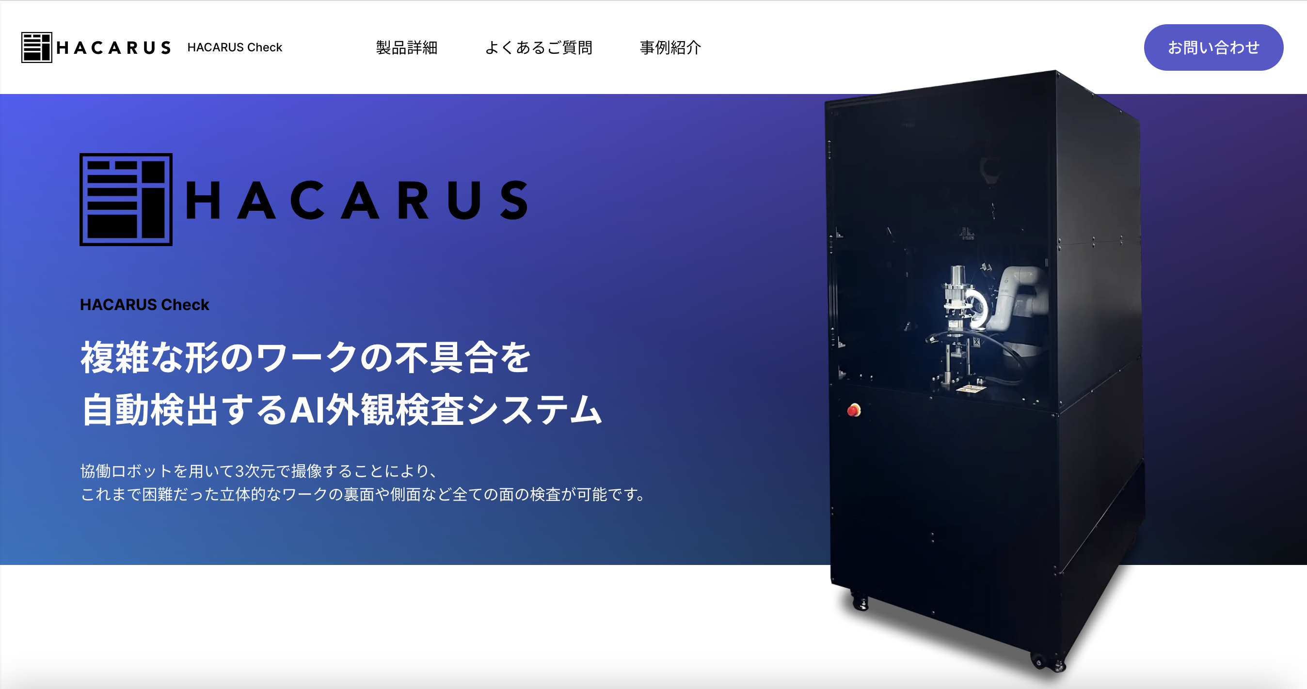 「HACARUS Check」の普及に向け、公式の製品紹介ページ(https://check.hacarus.com/ja/)を公開。特長や詳細仕様をはじめ、既存製品との比較などを掲載しており、「HACARUS Check」の魅力を分かりやすく紹介していますので、ぜひご覧ください。