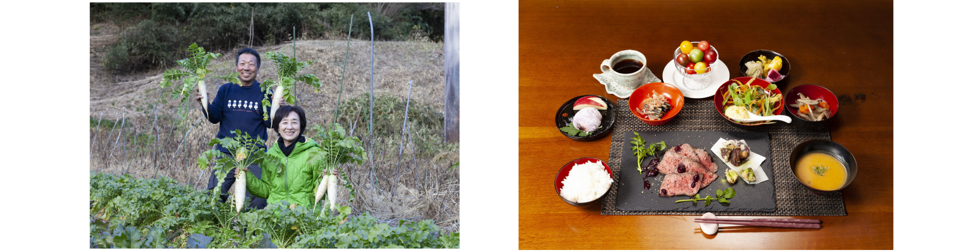 農家カフェも併設しており、地元で採れた食材をふんだんに使ったこだわりのお料理が食べられます。