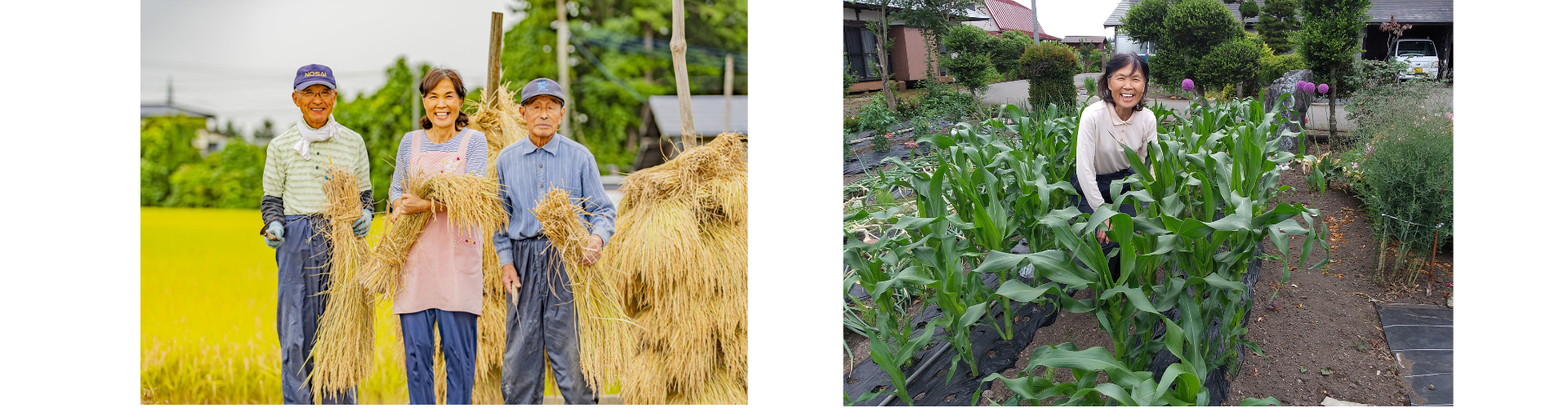 四季を通じて季節の野菜や果物の収穫体験を行っています。秋には稲刈り体験も可能です。