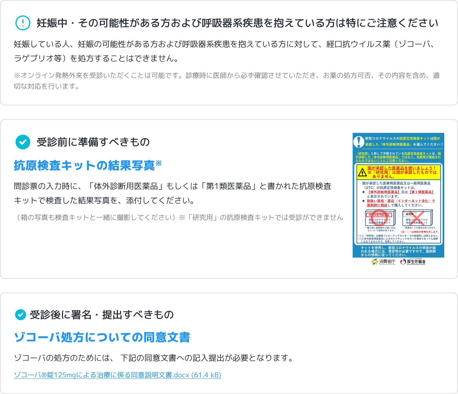 ゾコーバの処方のためには、 ご連絡する、同意文書への記入提出が必要となります。