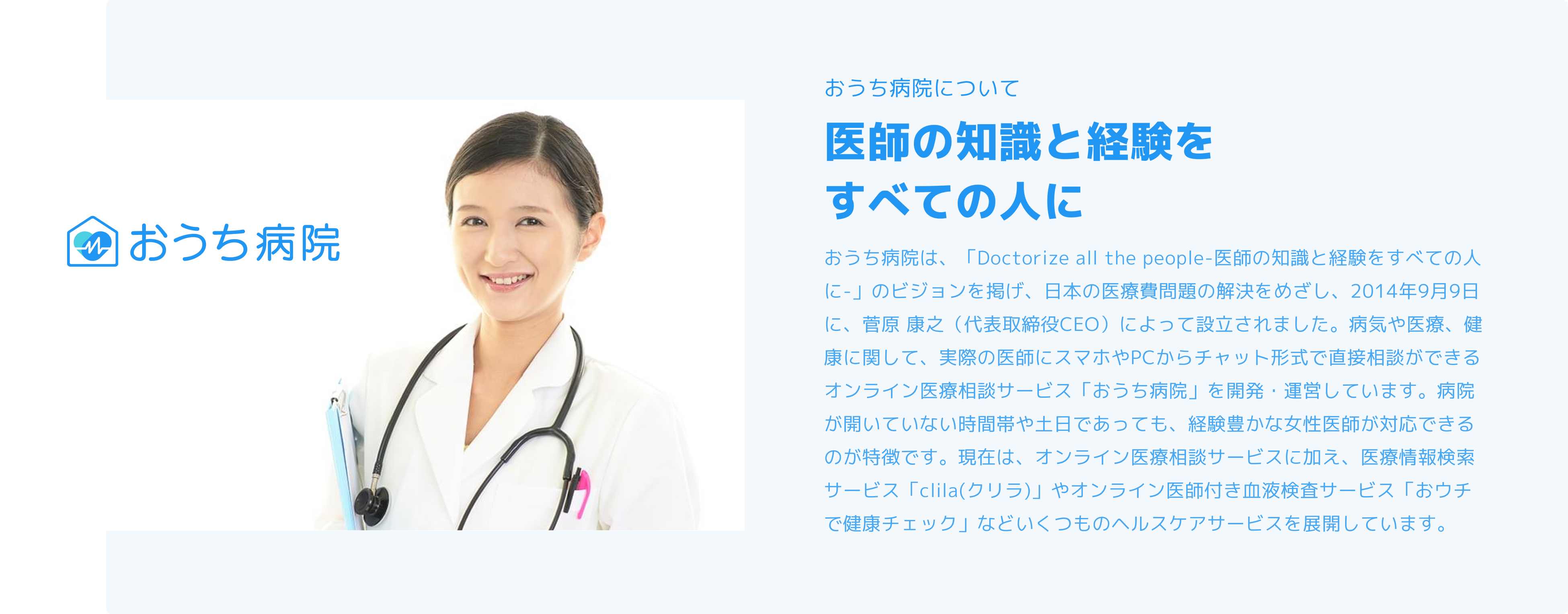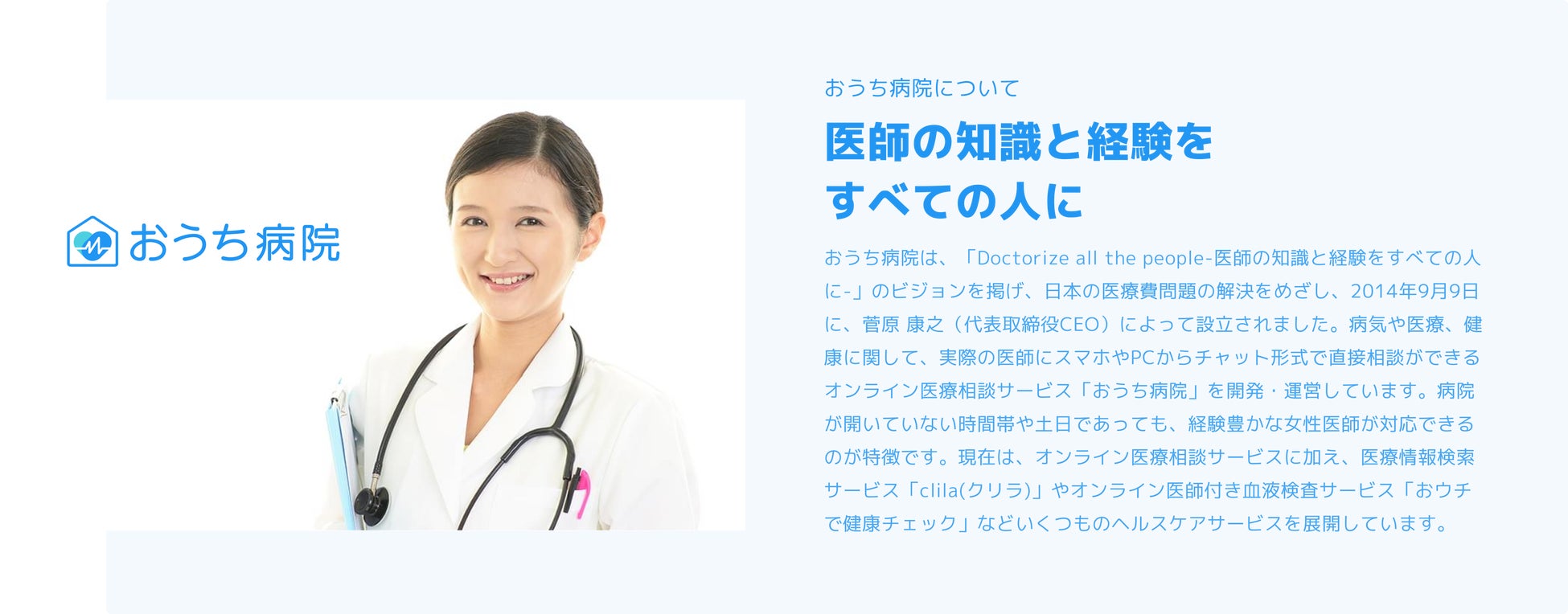事業内容:オンライン診療・医療相談を提供する「おうち病院」の開発・運営など