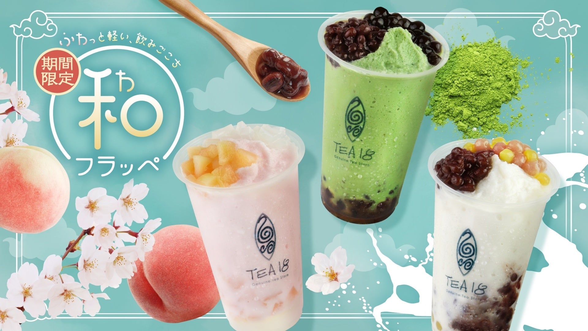 TEA18の春の新作は、ふわっと軽い飲み心地の『和フラッペ』が登場。