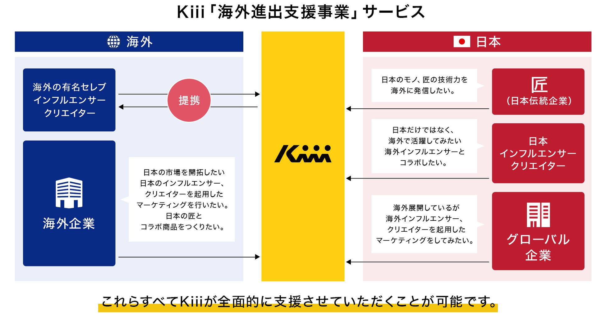 株式会社Kiii(本社:東京都渋谷区、代表取締役:今川 龍一、専務取締役:藤倉晴樹、以下Kiii)は、2021年9月より海外進出支援サービスの検討を重ね、日本のみならず海外市場も視野にいれたグローバルサービス提供の実現に向け、計画を進めてまいりました。この度、海外進出支援サービスを提供する準備が整いましたことを発表いたします。