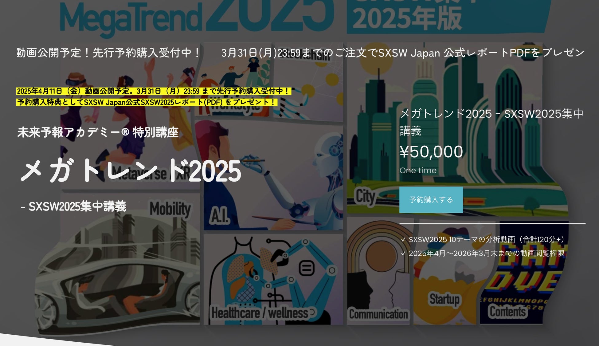 MegaTrend 2025 オンライン講座(SXSW集中講義2025年版)