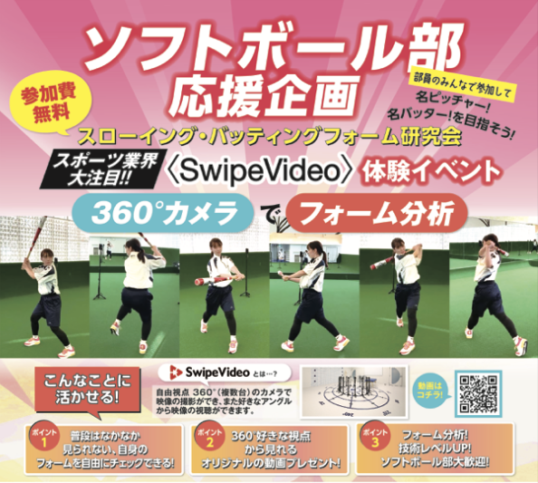そして2021年からは、三幸学園様で所持するSwipeVideoの撮影システムをご活用され、全国の部活動へ向けたSwipeVideo撮影サービス(フォームチェック,スイングチェックなどが可能)を開始されました。