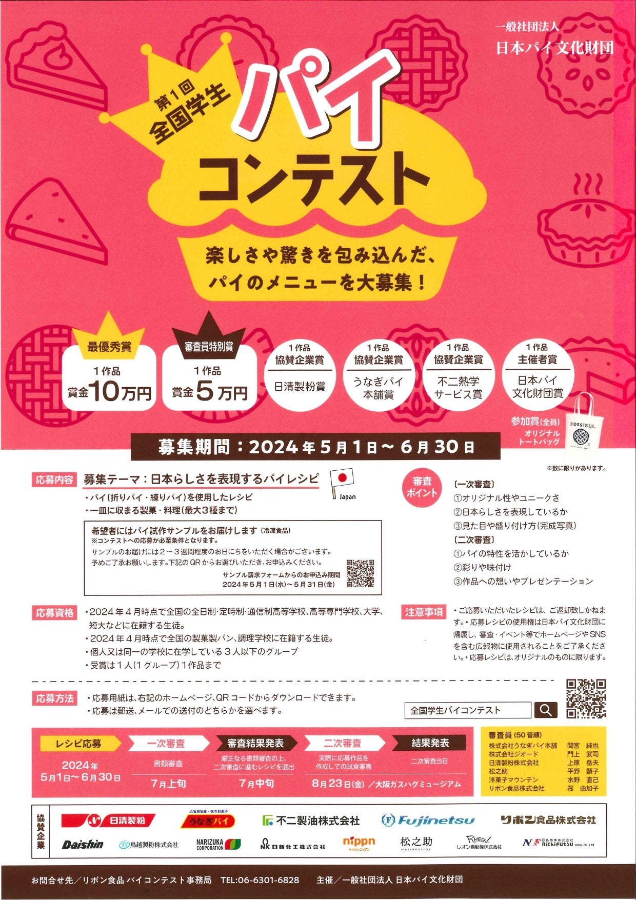 お問合せ先:リボン食品パイコンテスト事務局 TEL:06-6301-6828