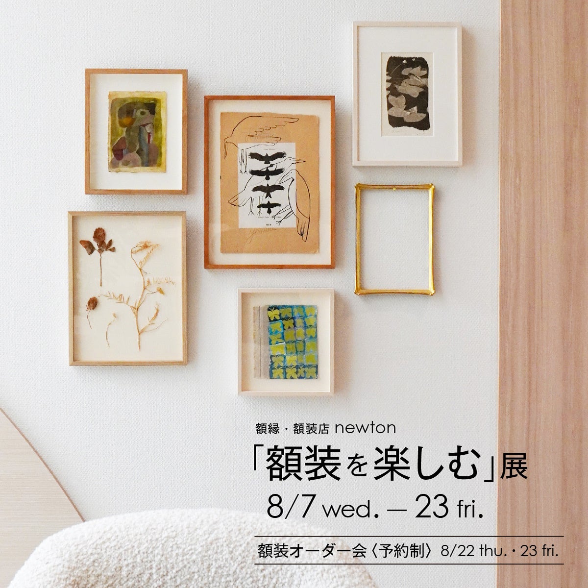 2024年8月7日(水)- 8月23日(金)の期間、二子玉川 アルフレックス リストアにて老舗額装店「newton」が手掛けた様々な額装品を展示・販売する「額装を楽しむ展」を開催します。