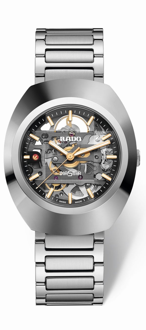 最新モデルでもこの先駆的な取り組みは健在。他の製品シリーズと同様、「スケルトン構造の技法」というラドーの創造的なコンセプトを拡げ、高品質R808自動巻キャリバーを新たに搭載しています。このバージョンは、アンスラサイトグレーのコーティングで、動作中は様々な要素によって補完されており、コントラストの素晴らしい視覚効果を生み出しています。表裏両面がサファイアクリスタルで、ゴージャスな自動巻ムーブメントのエレガントな造作を余すところなく堪能いただけます。新しい ダイヤスター オリジナル スケルトンは最大80時間パワーリザーブ機能を完備。旅行の際などに慌てる必要もありません。耐磁性ニバクロン™ひげぜんまいが、極めて的確に、信頼性の高い動きで時を刻みます。全5ポジションの標準テスト要件を上回る高精度を実現。新モデルは初代モデルの全体的な外装の特徴を踏襲しているものの、形状はより洗練され、ムーブメントは緻密で現代の最新ムーブメントを搭載しています。