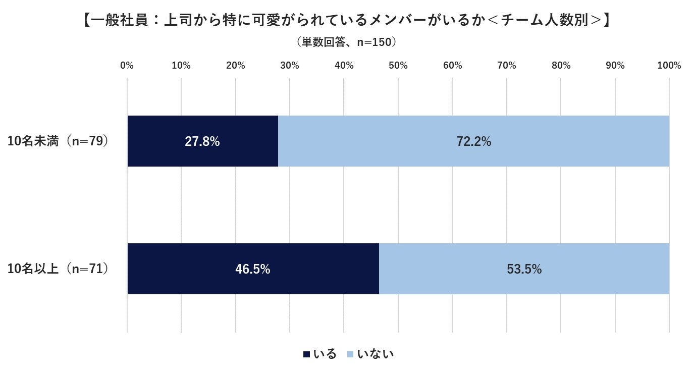 【上司のひいきに関する調査】「上司が特に可愛がる部下・後輩がいる」10名以上の組織で半数超え
