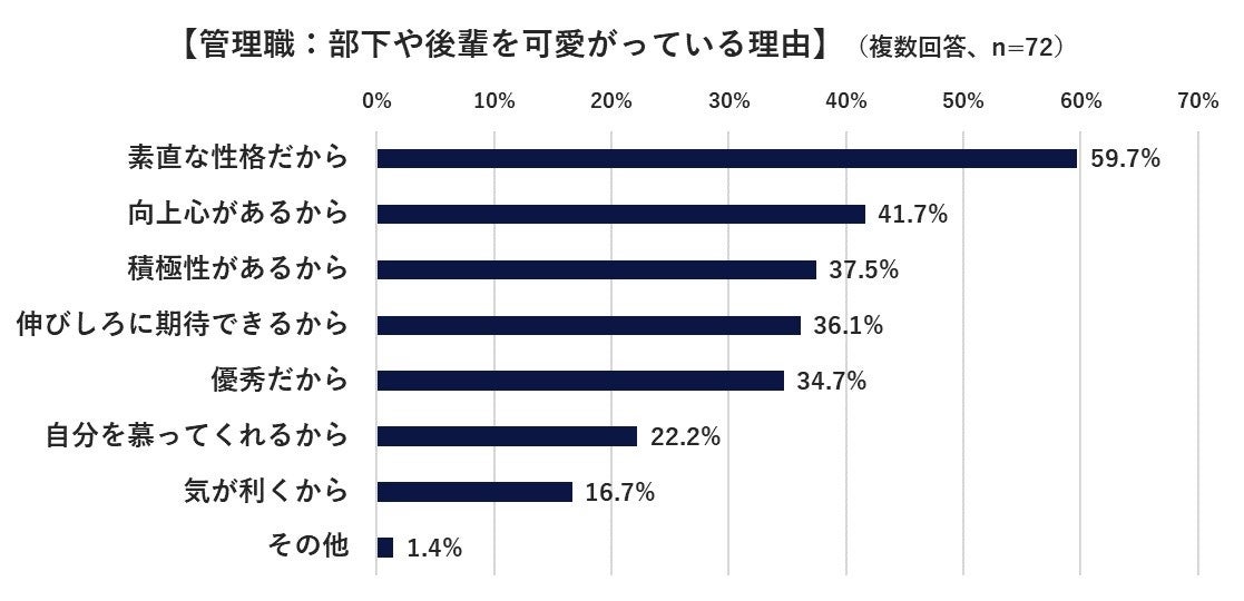Q2. あなたが部下や後輩を可愛がっている理由をお答えください。(複数回答、n=72 ※管理職)