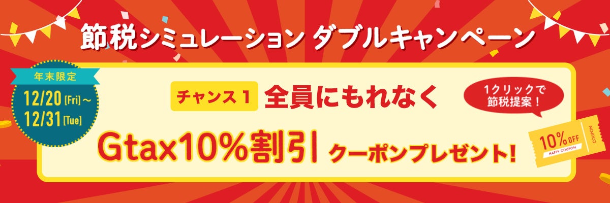 年が明けたらすぐに始まる確定申告期に向け、「Gtax」では2つのキャンペーンを開催!年末は是非「Gtax(個人版)」が提供する「節税シミュレーション機能(※記事下部)」をご活用ください。