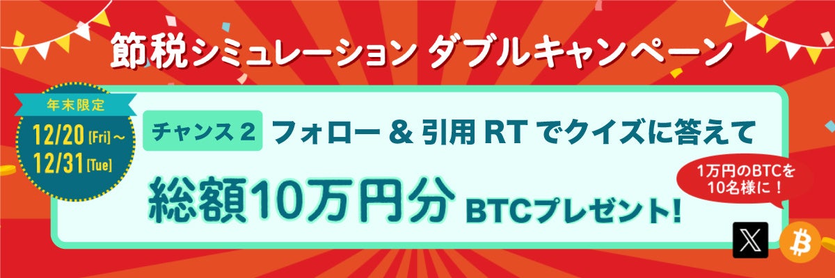 キャンペーン2:節税クイズに正解で総額10万円相当のBTCが当たる!