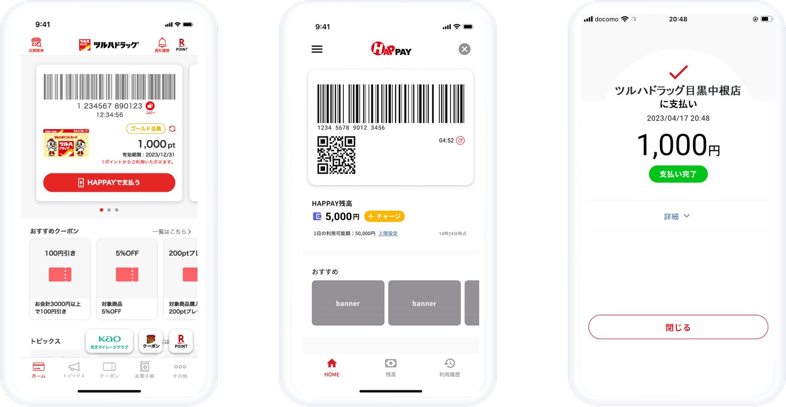 「HAPPAY」は累計790万ダウンロードを誇るツルハグループ各社の公式アプリにスマホ決済機能が追加され、支払いもポイントもクーポンも一つのアプリで完結することができます。インフキュリオンは「HAPPAY」の開発にあたり、企業独自のPayサービスを構築するためのスマホ決済プラットフォーム「Wallet Station」を提供し、ユーザー登録および認証、決済処理、残高管理といったシステム面を担っています。また、全国の金融機関が加盟する日本電子決済推進機構が運営する「Bank Pay(バンクペイ)」との接続によりメガバンクをはじめとした100行以上の金融機関の銀行口座から「HAPPAY」に直接チャージすることができるなど、顧客体験を損なわない、シームレスな決済UXを実現しています。