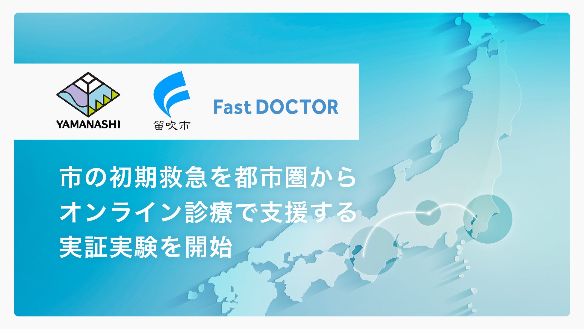 ファストドクター、山梨県の「TRY!YAMANASHI!実証実験サポート事業」に採択され、笛吹市の初期救急を都市圏からオンライン診療で支援する実証実験を開始