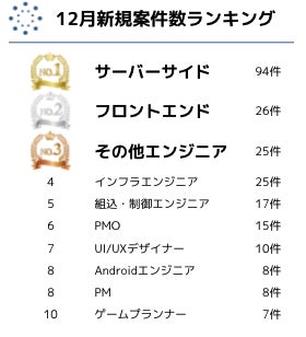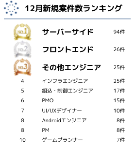 11月度と比較した12月度のデータや、テクフリ全体のデータなど、より詳細なレポートは下記URLよりダウンロードいただけます。案件の市況感を知りたい方や、キャリアアップのために情報収集をしたい方は、ぜひダウンロードくださいませ。