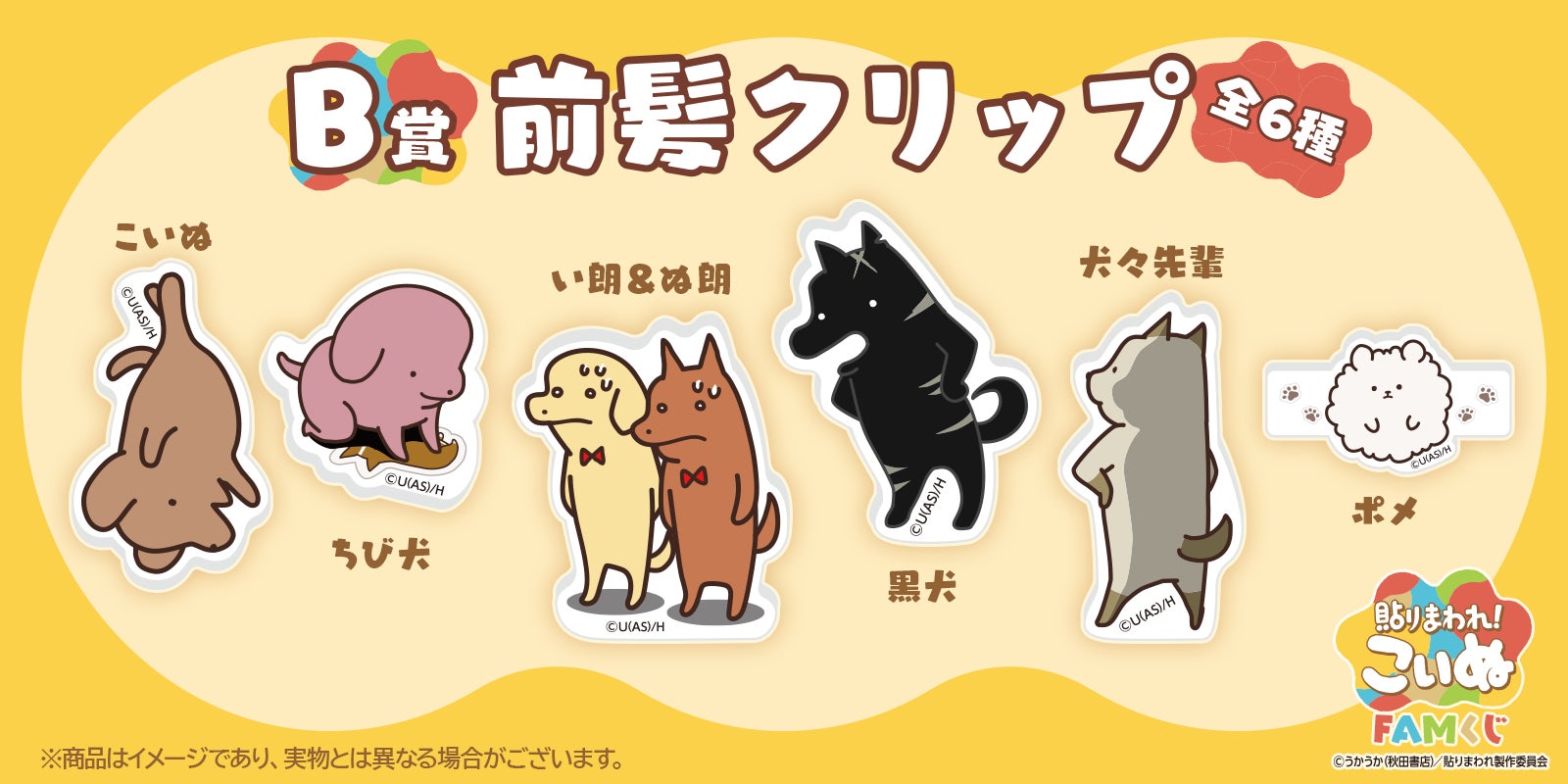 期間中に「FAMくじオンライン」の公式Xアカウント(@FAMKUJI_ONLINE)をフォローし、キャンペーン投稿をリポストすることで、抽選で3名様にB賞の「『貼りまわれ!こいぬ』前髪クリップ全6種セット」をプレゼントいたします。