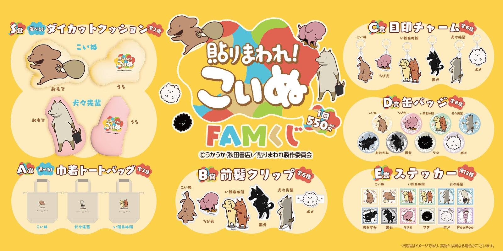 ファンエンゲージメントプラットフォーム「FAM」の企画・開発・運用を手掛ける株式会社Nagisa(本社:東京都渋谷区、代表取締役社長:横山佳幸)は、オンラインくじサービス「FAMくじオンライン」において、<『貼りまわれ!こいぬ』FAMくじ>を2025年5月1日(木)15:00より販売開始いたします。