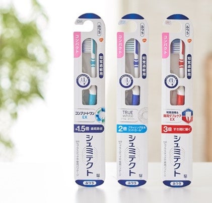①「シュミテクト やさしく歯周ケア ハブラシシリーズ」製品デザイン改良により約40%(約50トン)のプラスチック使用量を削減