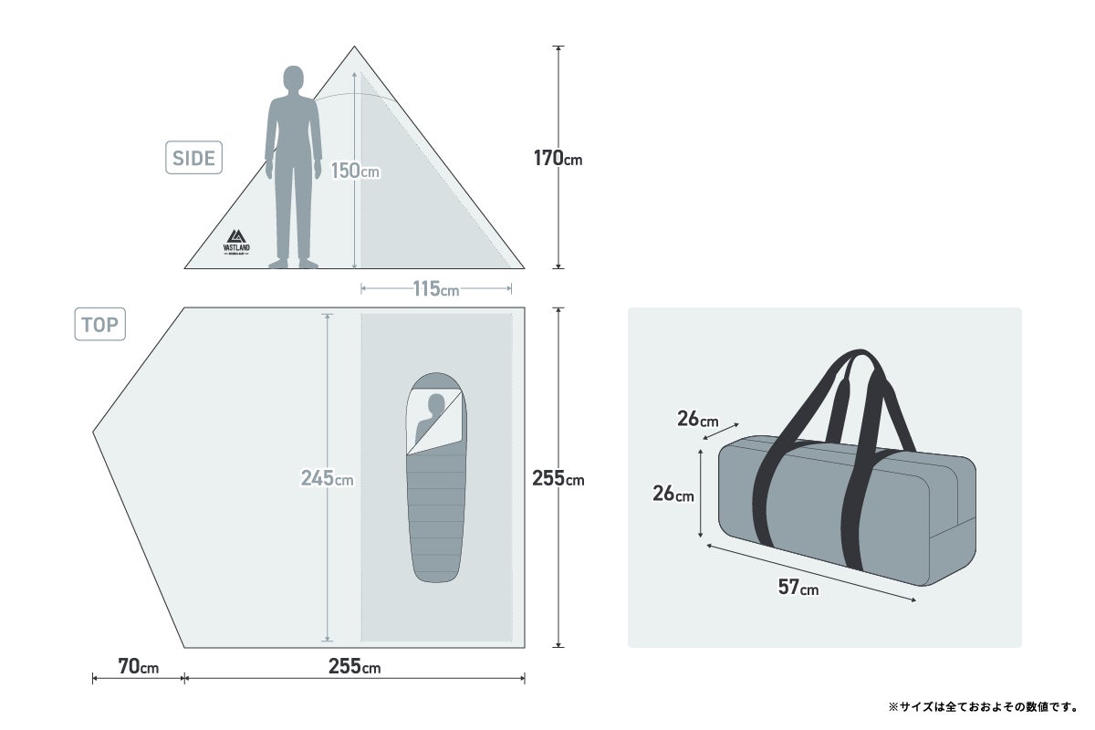 製品サイズ(展開時) | アウターテント:約)幅255cm×奥行255cm×高さ170cm |