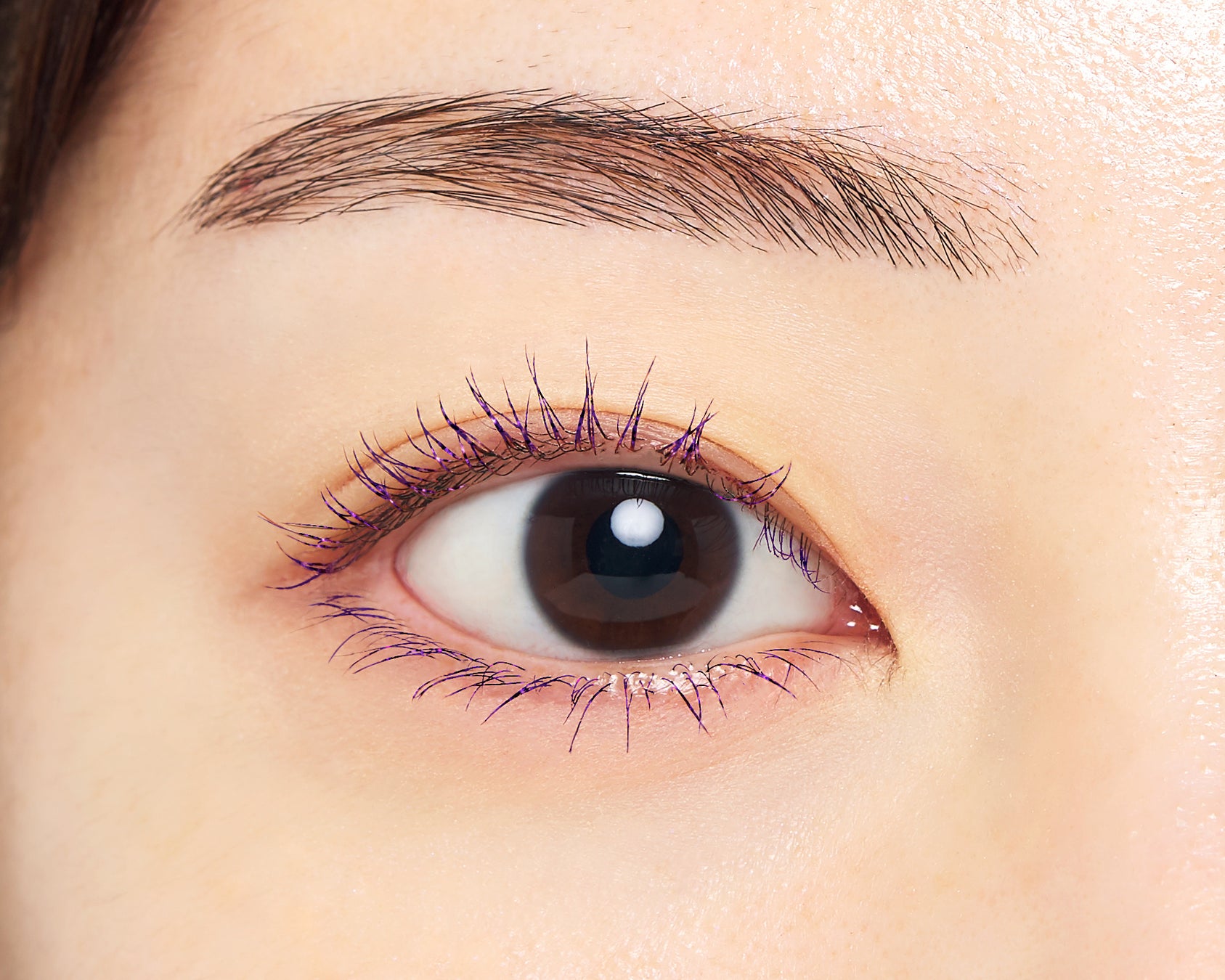 マスカラも、メタリックなラベンダーをひそませているので、艶っぽい毛流れに。