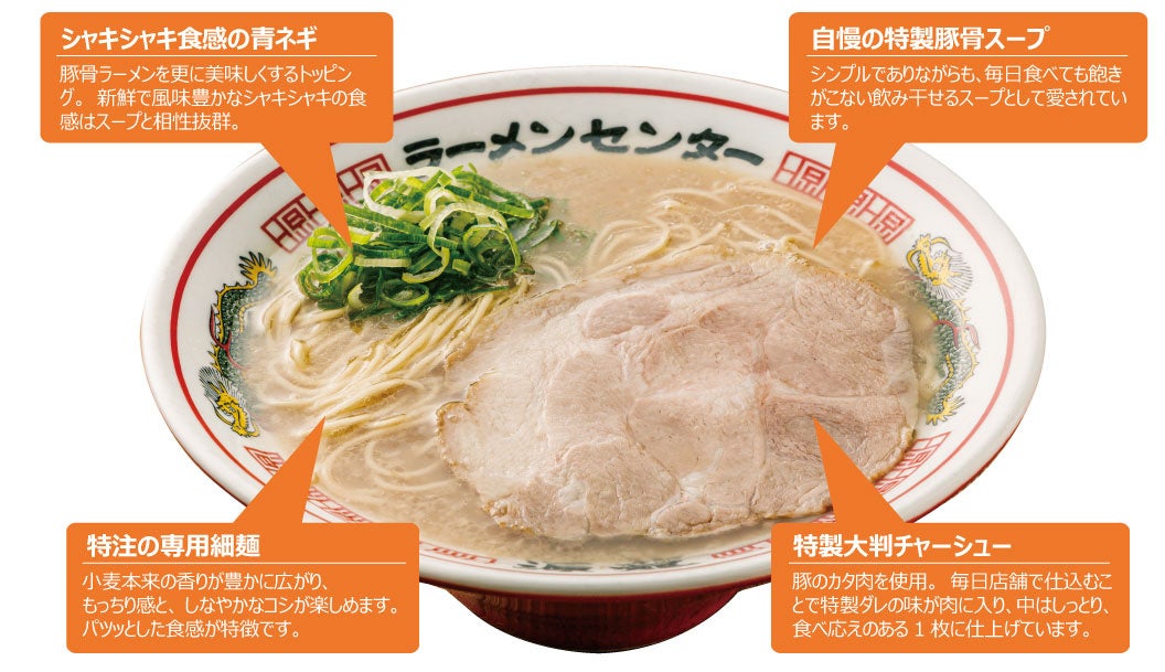 博多ラーメン専⾨店源龍ラーメン(げんりゅう)は、本場博多はもとより国内外11カ国で愛されている元祖泡系豚⾻ラーメン『博多⼀幸舎』がプロデュースする、豚⾻ラーメンブランドです。看板商品の「豚⾻ラーメン」は町豚⾻を追求し、試⾏錯誤の後、しっかりと豚⾻の旨味(パンチ)と、ほんのり感じる⽢みがクセになるスープが特徴の豚⾻ラーメンとして完成しました。そして、麺は源龍ラーメンの為だけに特別配合したこだわりの⼩⻨と、源龍ラーメンオリジナルの豚⾻スープに合うよう、丁度よい加⽔率、番⼿(22番)で作り出された特注の細麺を使⽤しています。⼩⻨本来の⾹りが豊かに広がり、もっちり感と、しなやかなコシを楽しめ、パツッとした⾷感がついつい替⽟を注⽂したくなるほどクセになります。こだわりの、しっとりとした特製⼤判チャーシュー、シャキシャキの⻘ネギと⾷べ進めていただくことで、本場博多の町豚⾻を感じていただけます。そんな源龍ラーメンは、お⼦様からご年配の⽅、⽼若男⼥問わず幅広い⽅達より「早い、美味い、また来たい!」本場博多の町豚⾻として⽀持いただいております。
