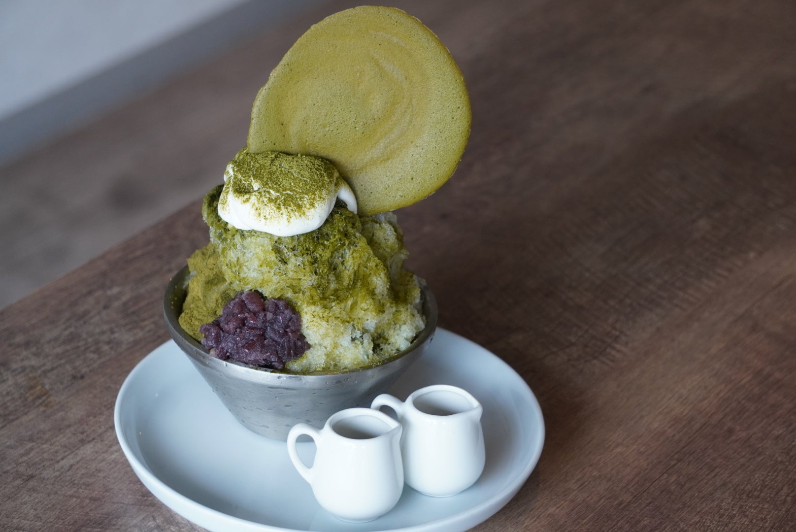自家製の濃厚抹茶ソースに練乳、神谷製餡所のつぶあんを使用。