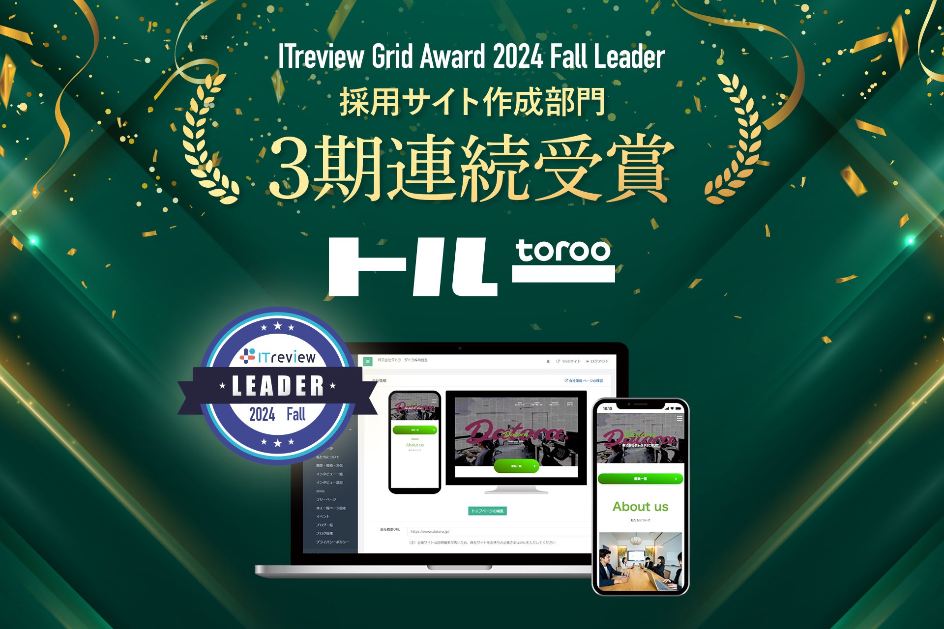 採用マーケティングサービス「トルー」 、「ITreview Grid Award 2024 Fall」の採用サイト作成部門において「Leader」を受賞