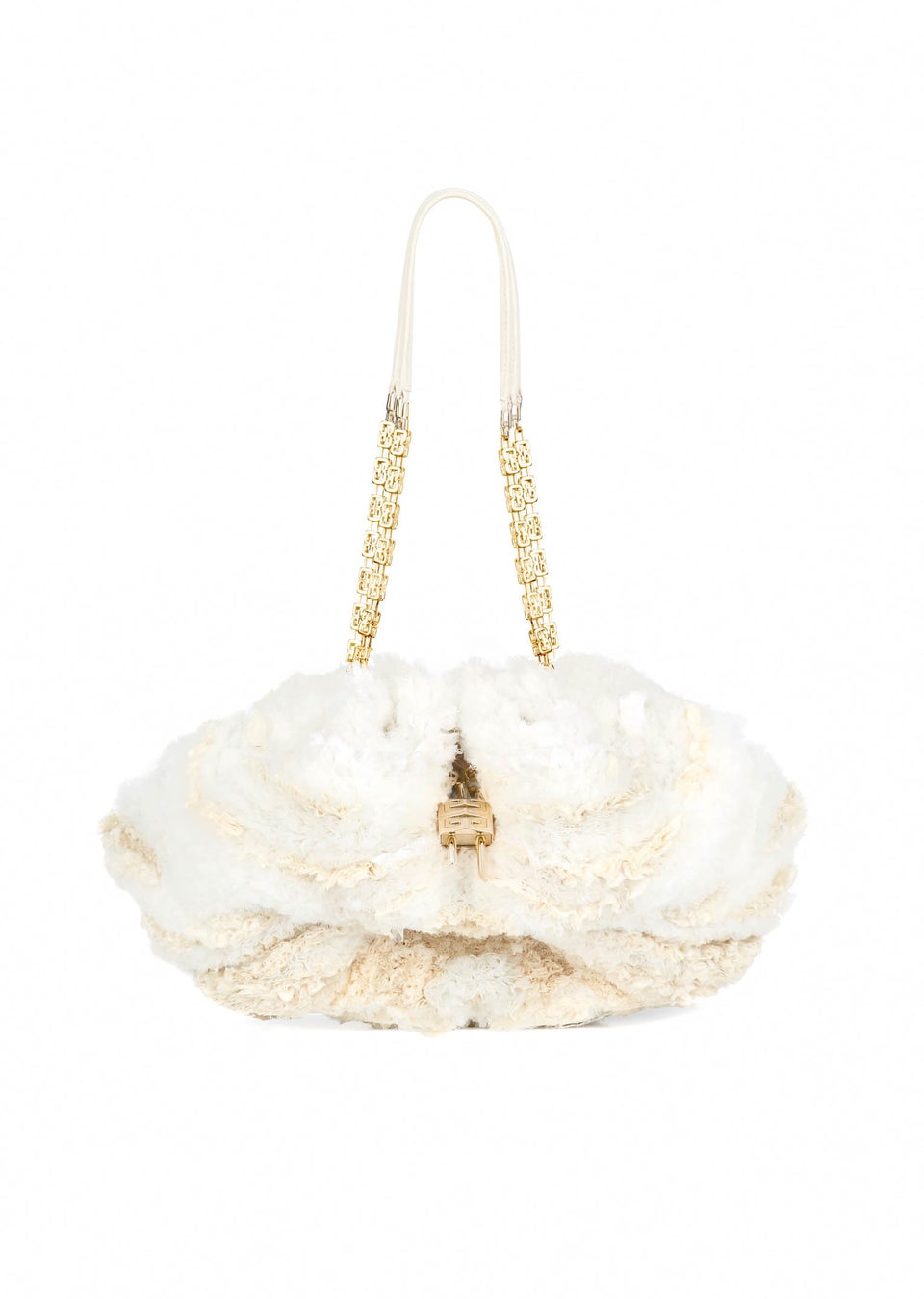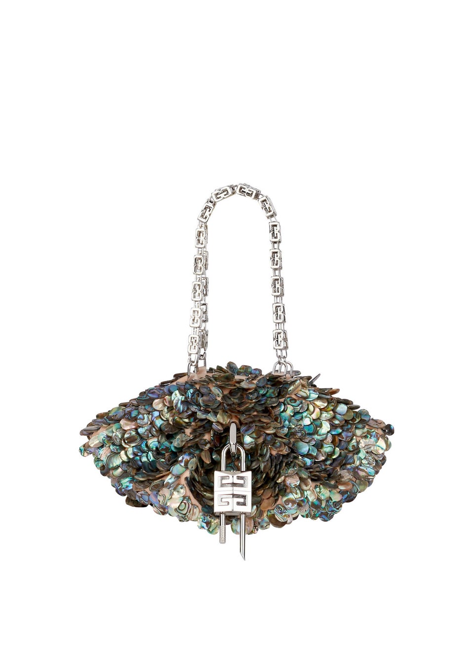 Kennyシリーズからは、ジバンシィが誇るオートクチュールの技術を用いて細工したオーガンザを纏ったバリエーションも登場いたします。この手法はジバンシィの2022年春夏でも注目を集めたサヴォアフェールの結晶です。また全面にマザーオブパールの刺繡が施されたもう一つのタイプは、今季のキャンペーンでも用いられています。