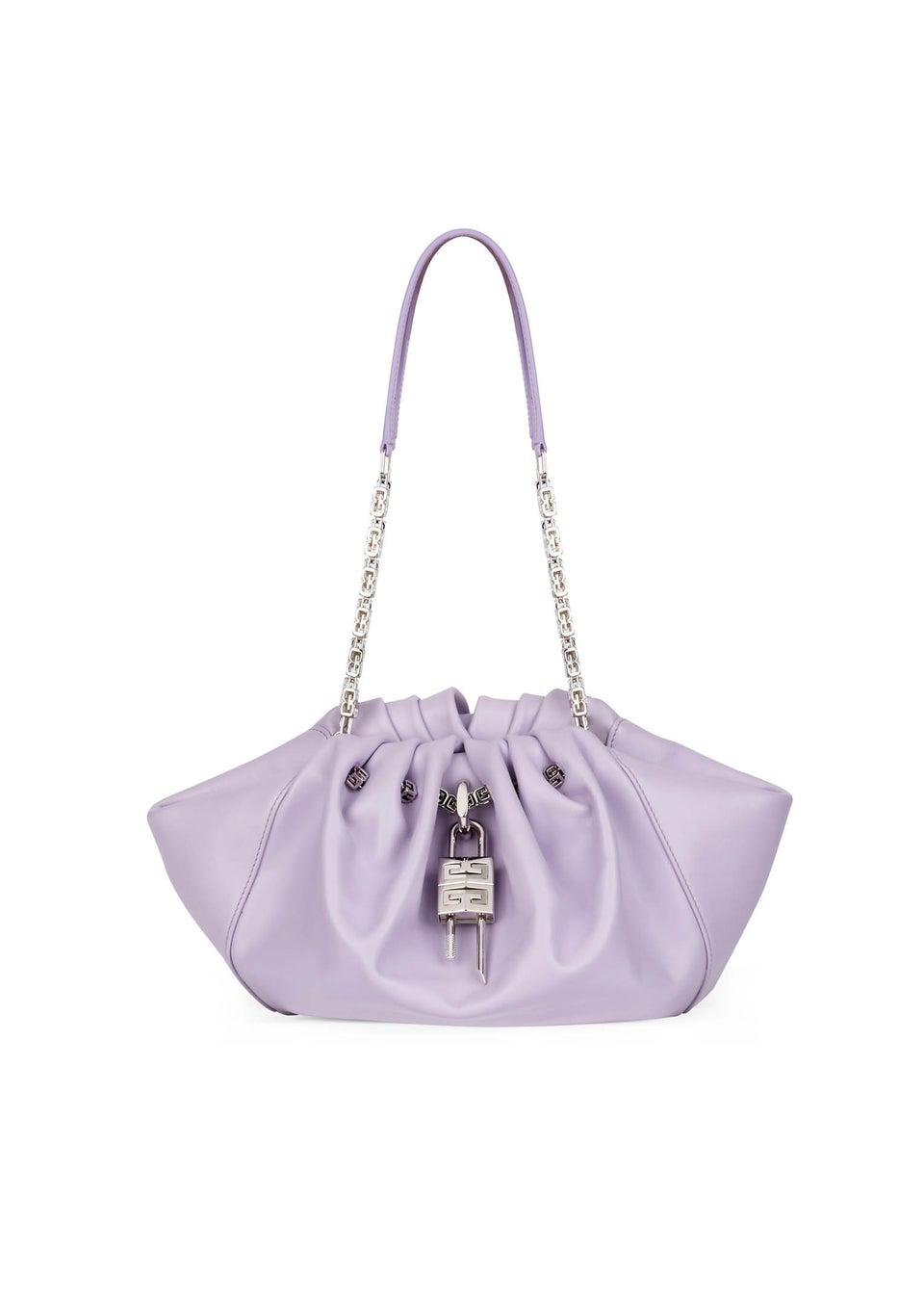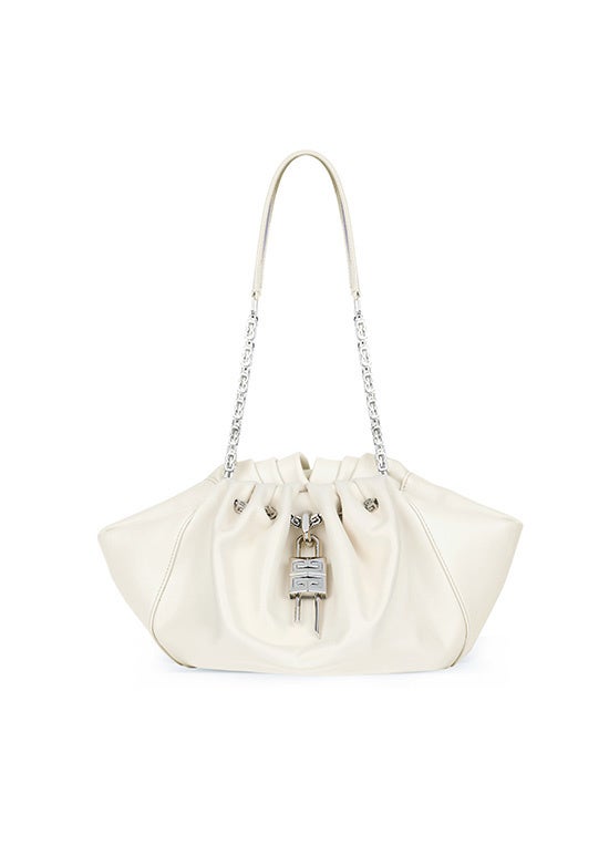 極めてソフトなカーフレザーで作られたKennyは、非常に巧妙な形状の丸いバッグで、G-Cubeのエレメントが散りばめられた、手作業で寄せたドレープがその個性を際立たせます。また、その優雅でフェミニンな魅力が、ダブルのG-Cubeチェーンストラップや、今やジバンシイのアイコンとなったパドロックに反映され、美しい協奏曲を奏でます。ソフトなカーフレザーを用いたショルダーピースや、閉めた時にカチッと心地よい音がする、控えめでありつつもしっかりとしたマグネティック・クロージャーが、ラグジュアリーでありながらも実用的なディテールとしてバッグを引き立てます。