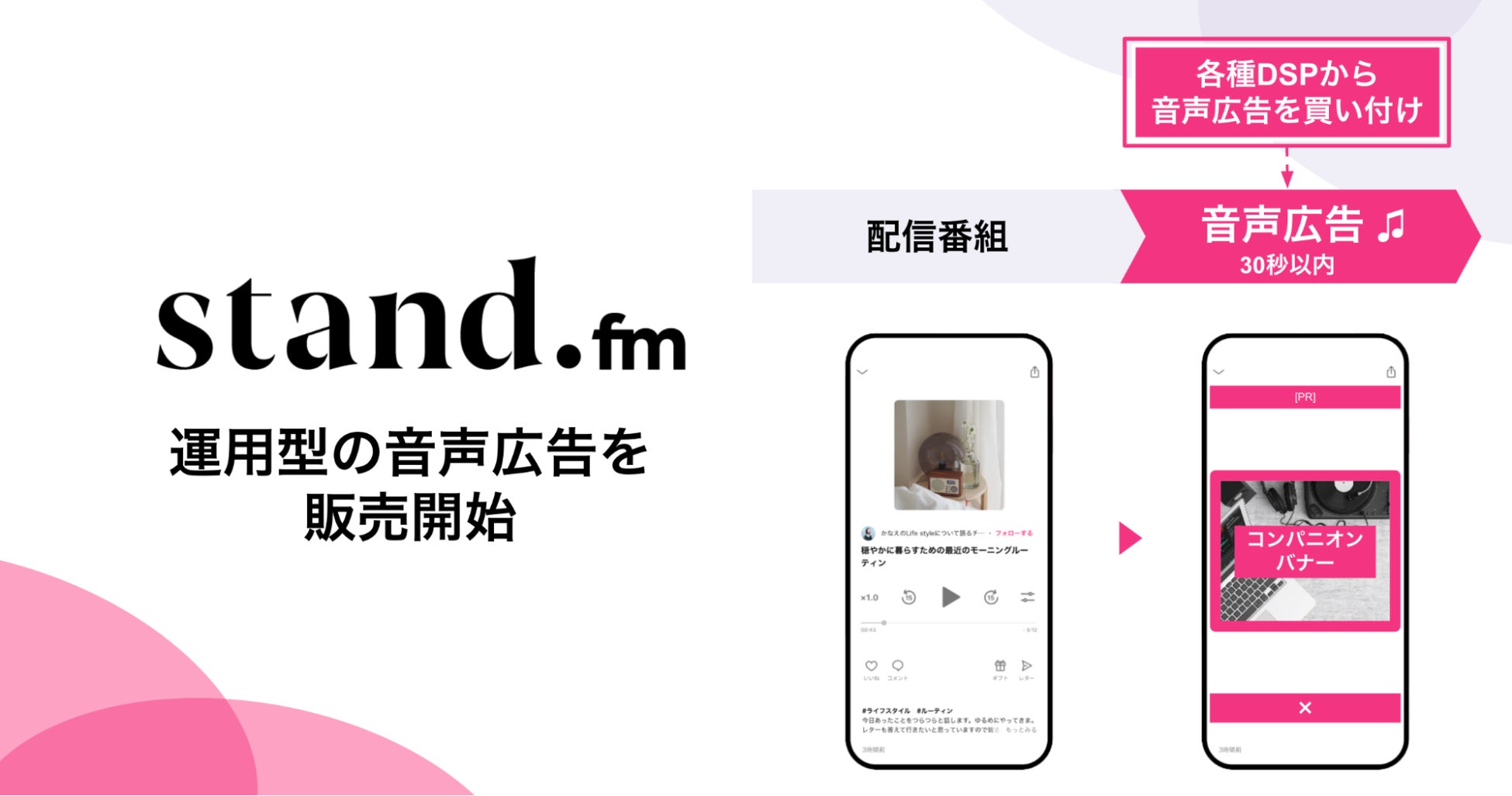 このたび、「stand.fm」内で配信される音声コンテンツの音声広告枠に、プログラマティック(運用型)広告として配信ができる広告メニューの販売を開始いたしました。