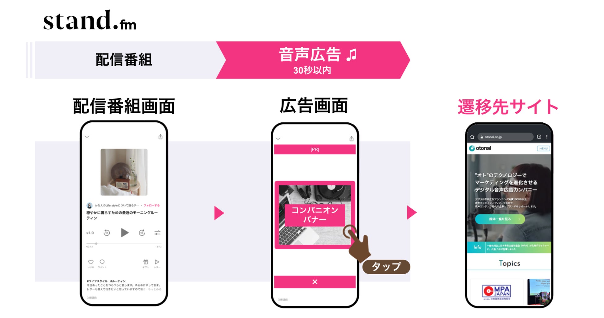 オトナル、音声配信プラットフォーム「stand.fm」の運用型音声広告を販売開始