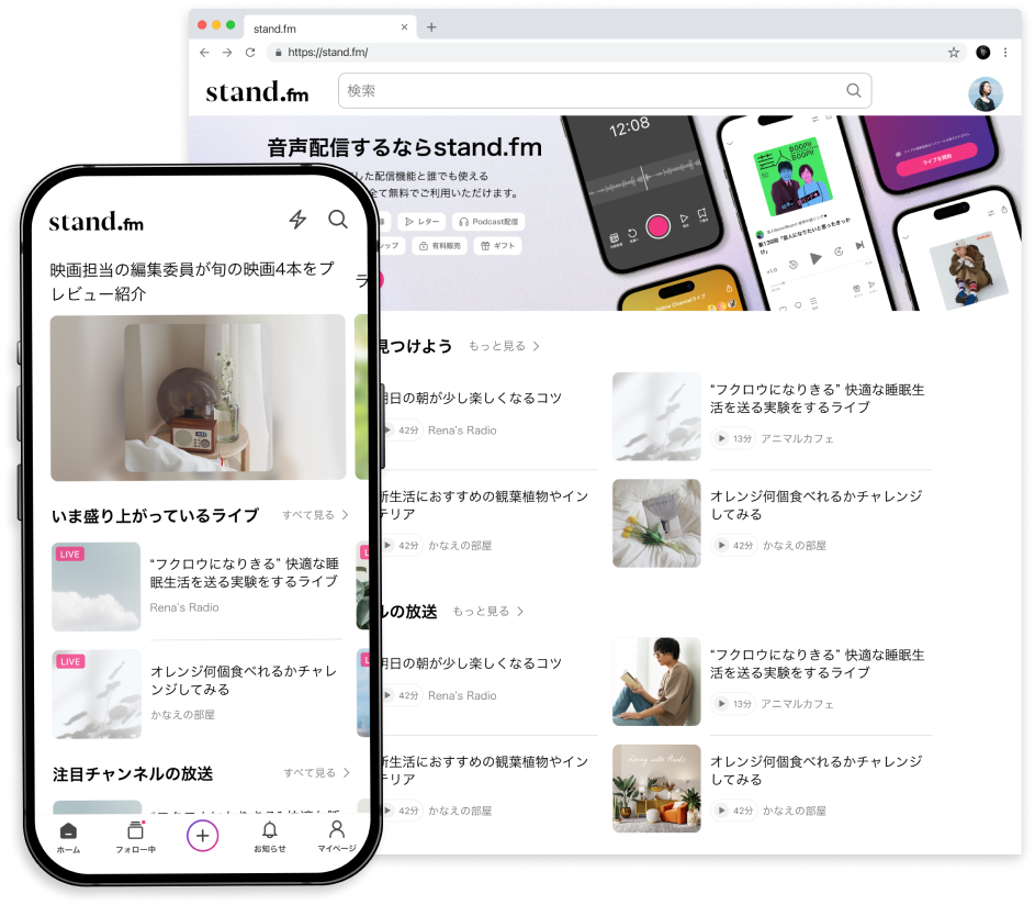 音声配信プラットフォーム「stand.fm(スタンドエフエム)」は、誰でも気軽に収録ができてすぐに音声番組の配信ができる音声配信アプリです。