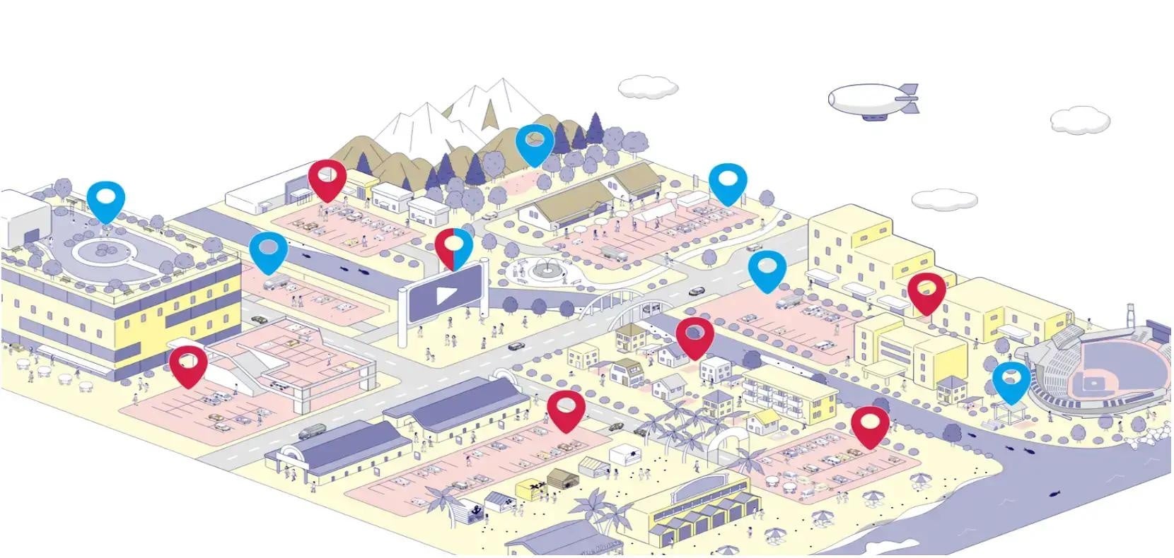 コインパーキング内のRaku-Pポールでは、車両がいない間、動画が配信されます。車室後方部に設置されたRaku-Pポールのモニターと内蔵スピーカーから、「ソコカラ」のデジタル広告を配信。コインパーキング利用者だけでなく、その同乗者やコインパーキング前を通る人にも広告を届けることができます。精算完了後には、利用者へ音声付きの動画広告を直接お届けし、高い訴求効果が期待できます。