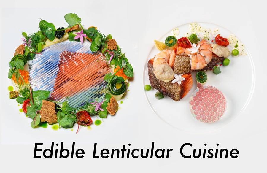 ◆Edible Lenticular Cuisine:レンズ形状のゼリーを活用した多視点からの見た目が変化する料理の提案/明治大学 宮下芳明研究室