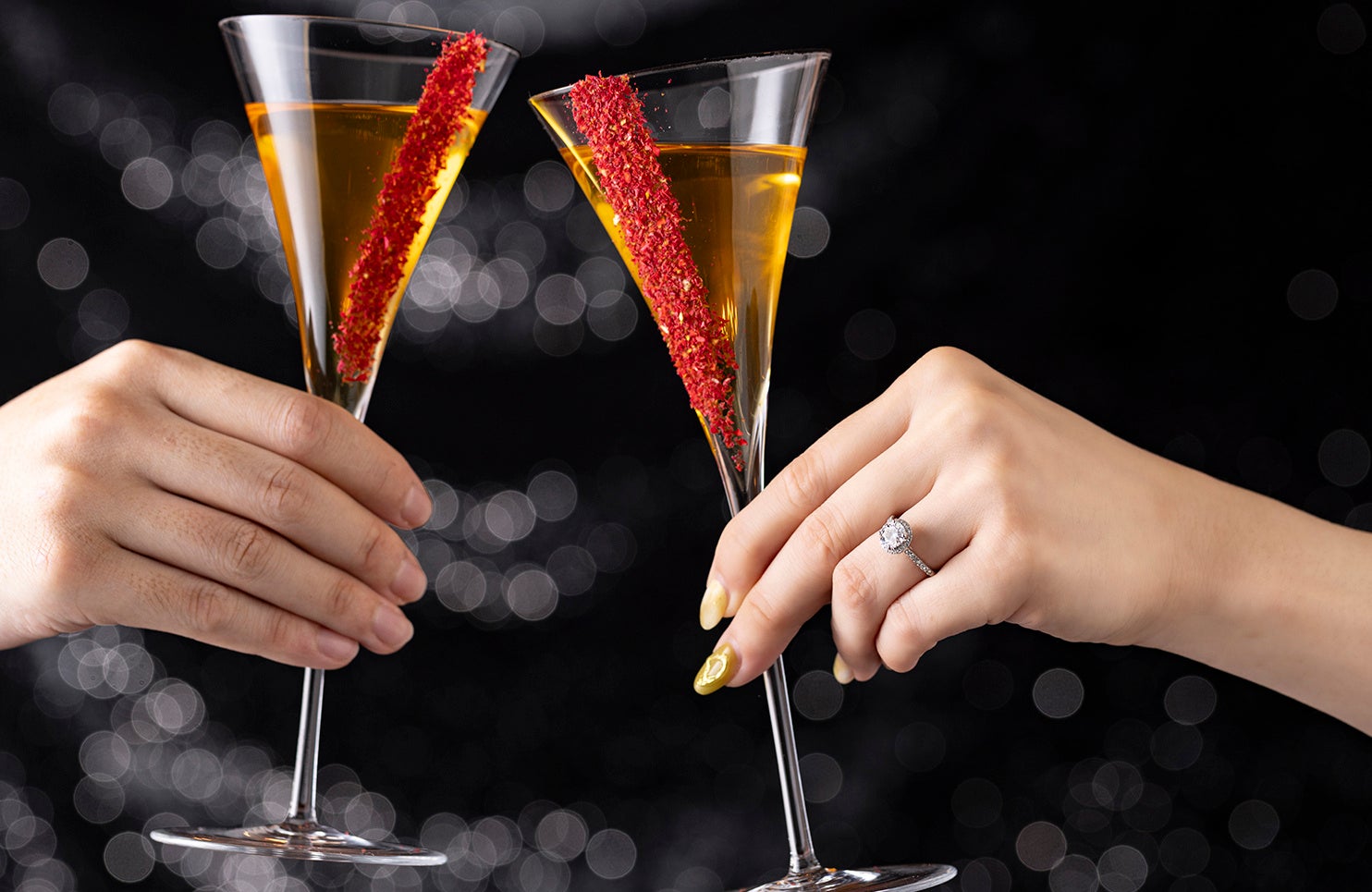本プランは、ダイヤモンドの2.5倍(*1)とも言われる輝きを放つ人工宝石「モアサナイト」を忍ばせたオリジナルカクテル「Grand Bonheur」(グランボヌール)が二人の特別な夜を演出します。カクテル2杯がプランに含まれており、1杯には、事前にご予約いただいたモアサナイトがグラスに隠されています。モアサナイトはご希望のジュエリーへ仕上げ、ご自宅へお届けいたします。