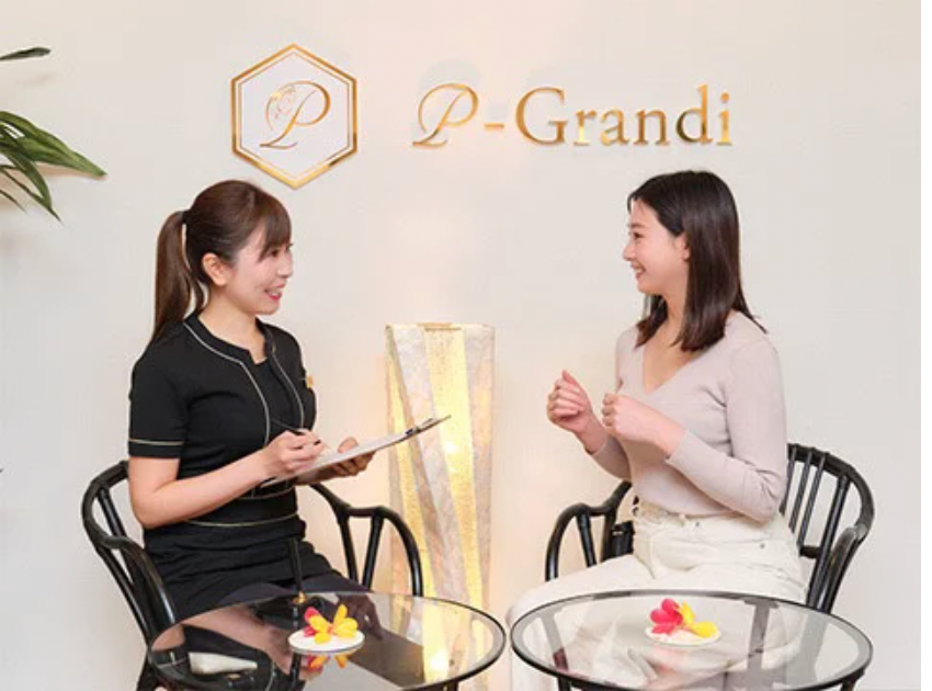 p-Grandiは、バストアップを専門とする人気育乳サロンです。バストに関するお悩みはお客様ごとに異なります。一人一人のお悩みに合った施術を行うために、施術前には必ず丁寧なヒアリングをしています。育乳サロンの老舗として独自に開発した手技で、多岐に渡るお客様のバストのお悩みを解決しています。また施術後には、バストの確認とアフターカウンセリングを行い、パーフェクトなバストづくりのお手伝いをしています。