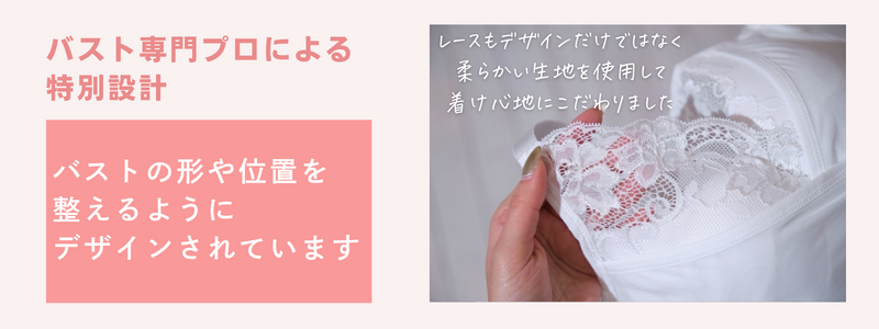 PGブラは、バスト専門プロによる特別設計で、バストの形や位置を整えるようにデザインされています。