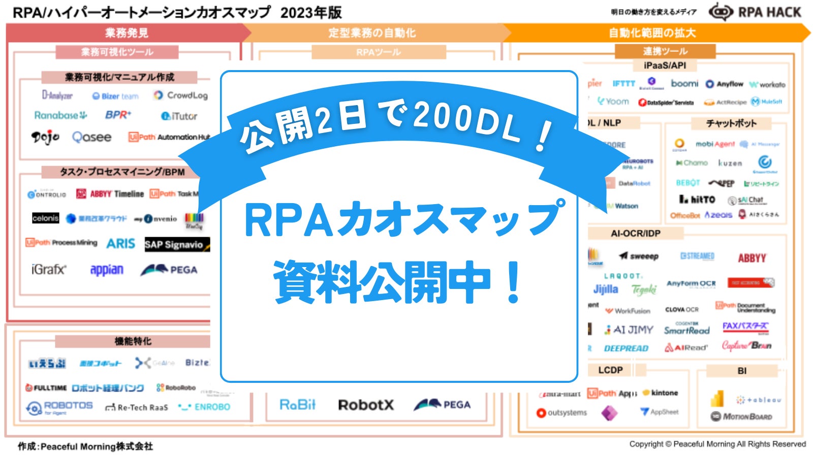 200ダウンロードを記念し、ご好評いただいている「RPAハイパーオートメーションカオスマップ2023年版」を改めてご紹介いたします。