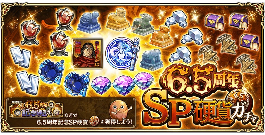 『6.5周年記念硬貨ガチャ』から獲得できる『6.5周年記念SP硬貨』で、より報酬が豪華な『6.5周年SP硬貨ガチャ』を引くことができます!