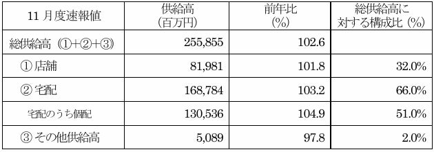 〇11月度の総供給高は、102.6%で前年超えでした。