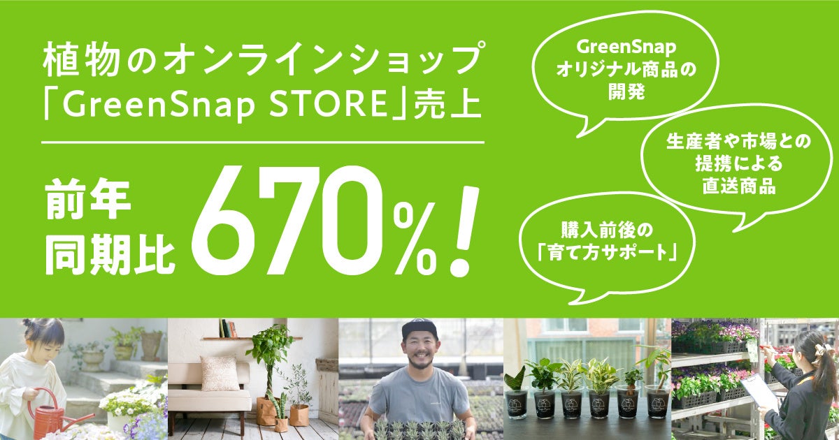 植物のオンラインショップ「GreenSnap STORE」の売上が前年同期比670%を記録。植物需要の増加に伴い大幅成長。