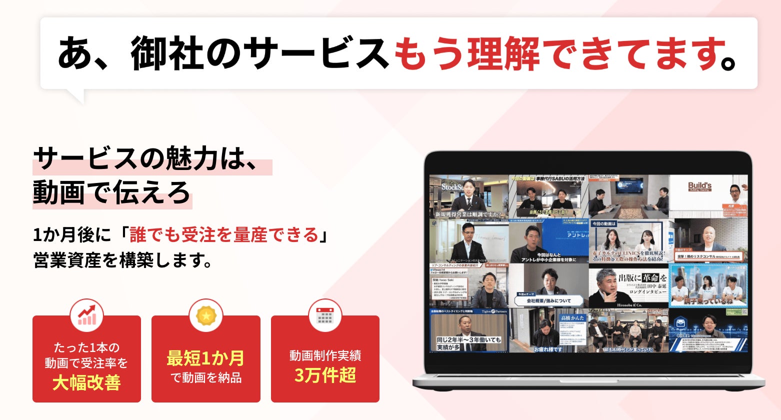 本サービスは、認知獲得ではなく「受注率・商談化率の向上」にコミットする動画制作サービスです。
