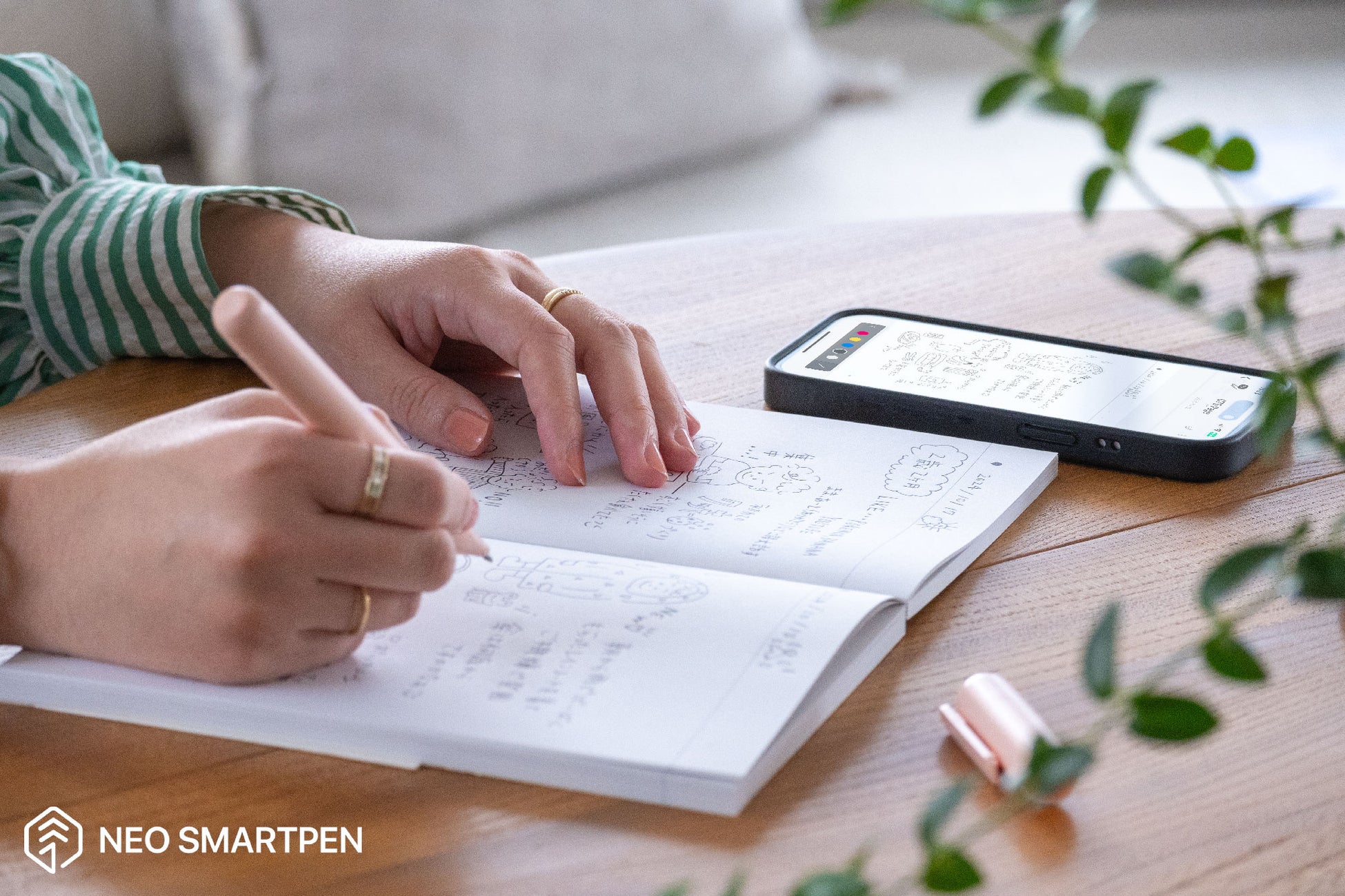 N plannerにNeo smartpenで手書きした予定は、専用アプリ「Neo Studio」によりノーステップで書いたそのままデジタル化。手書きなのに複写されるような使い方ができます。手書きなのに検索もできる驚き、利便性を日常にできる紙の手帳です。